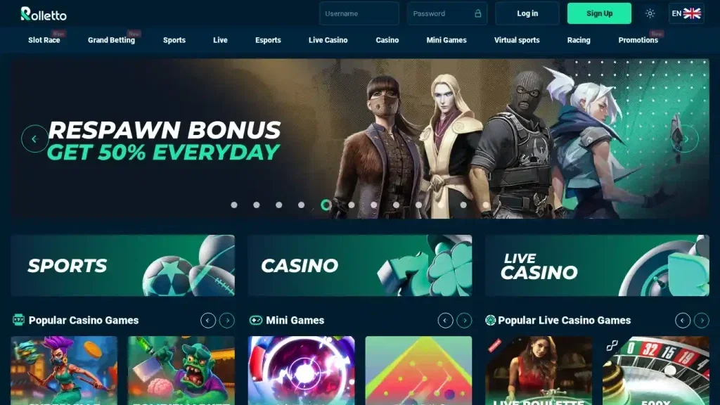 Rolletto offers a wide range of casino games with generous bonuses and flexible banking options.